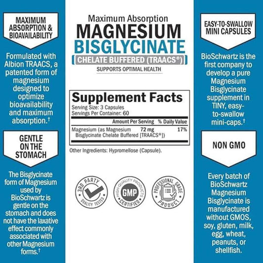 Bio Schwartz Magnesium Bisglycinate – 180 Capsules