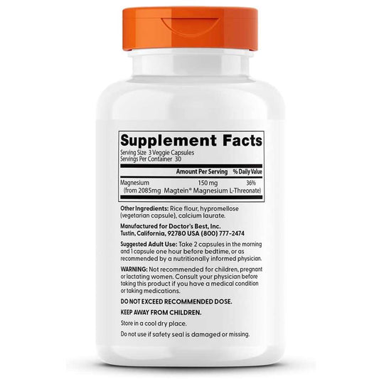 Doctor's Best Brain Magnesium with Magtein, 150 Mg per Serving, 90 Veggie Caps