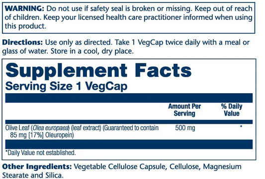 Solaray Olive Leaf Ext Double Strength 500mg 30 Caps