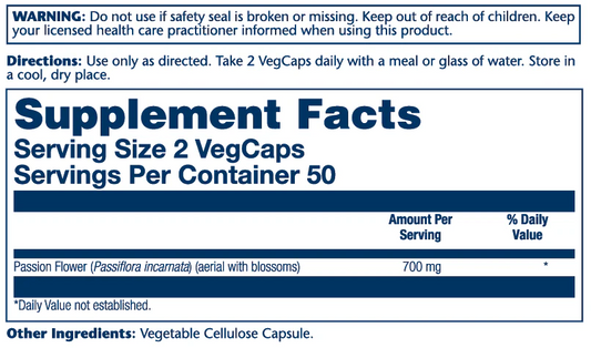 Solaray Passion Flower Aerial 700mg 100 Caps