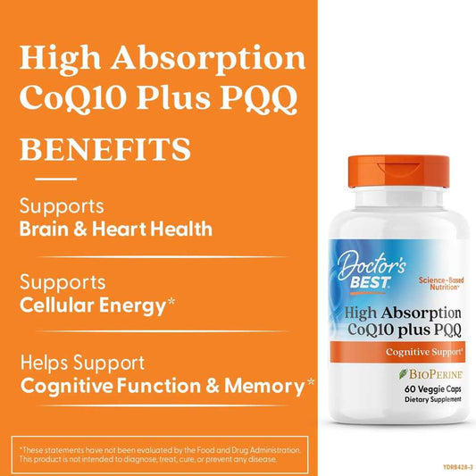 Doctor's Best Co Q10 100 Mg, Pqq 20 Mg, 60 Veggie Caps