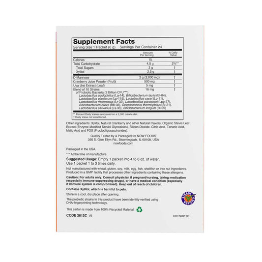 Now Foods Cranberry Mannose + Probiotics – Urinary Tract & Microbial Balance Support with 10 Probiotic Strains – 24 Packets / 144 G – Vegan