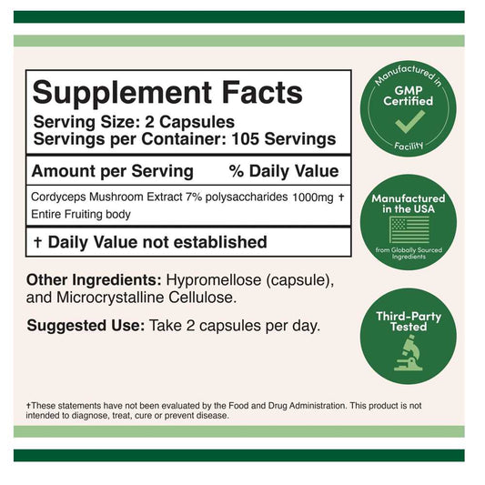 Double Wood Cordyceps Mushroom Extract – 1000 Mg – 210 Capsules