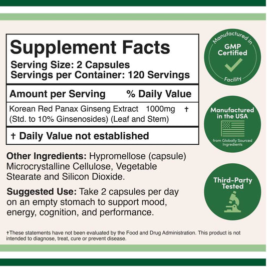 Double Wood Korean Panax Ginseng – 1000 Mg – 240 Capsules