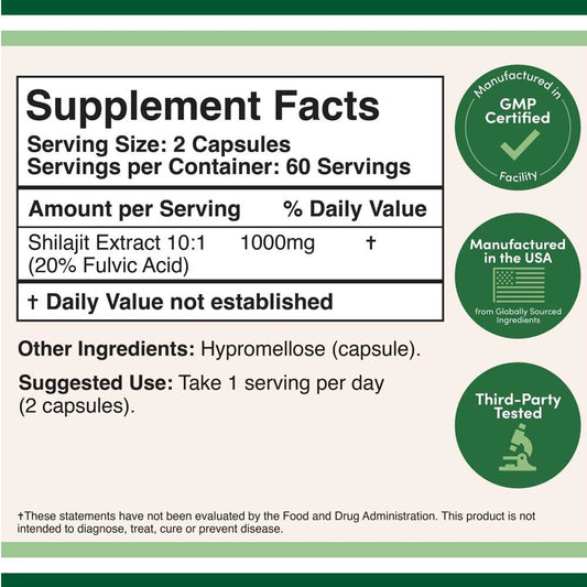 Double Wood Shilajit 1000 Mg – Fulvic Acid Rich, No Fillers, 120 Capsules