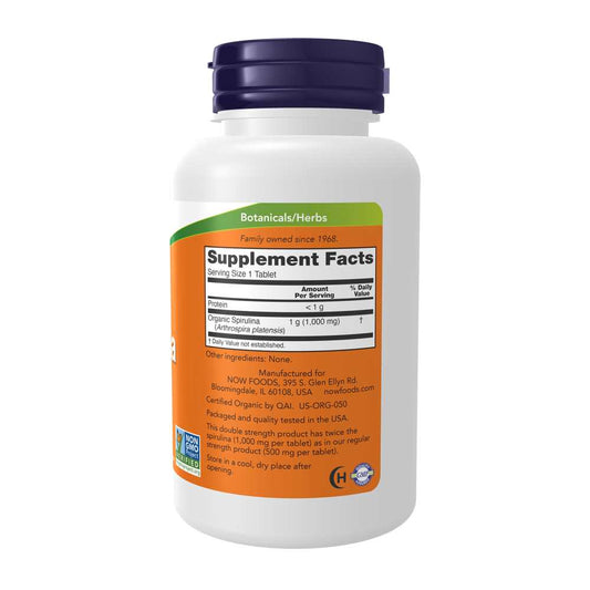 Now Foods Organic Spirulina 1000 Mg – Double Strength Super Green Formula – 120 Vegetarian Tablets
