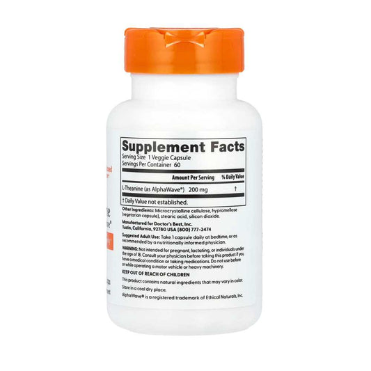 Doctor's Best L-Theanine, Alpha Wave®, 200 Mg, 60 Veggie Caps