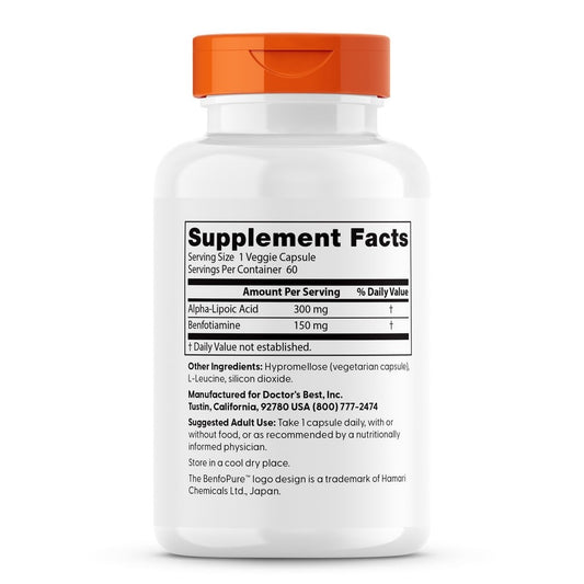 Doctor's Best Benfotiamine + Alpha-Lipoic Acid 150mg, Science-Based Nutrition™, Vegan Capsules, Supports Healthy Glucose Metabolism, 60 Veggie Caps