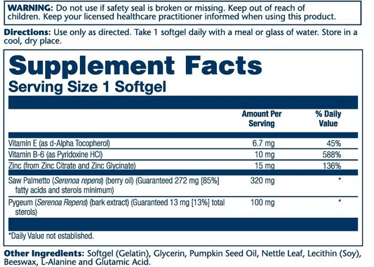 Solaray Saw Palmetto & Pygeum with Zinc & Vitamin E 30 Softgels