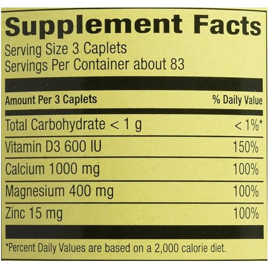 Spring Valley Calcium Magnesium & Zinc Plus Vitamin D3 250 Caplets