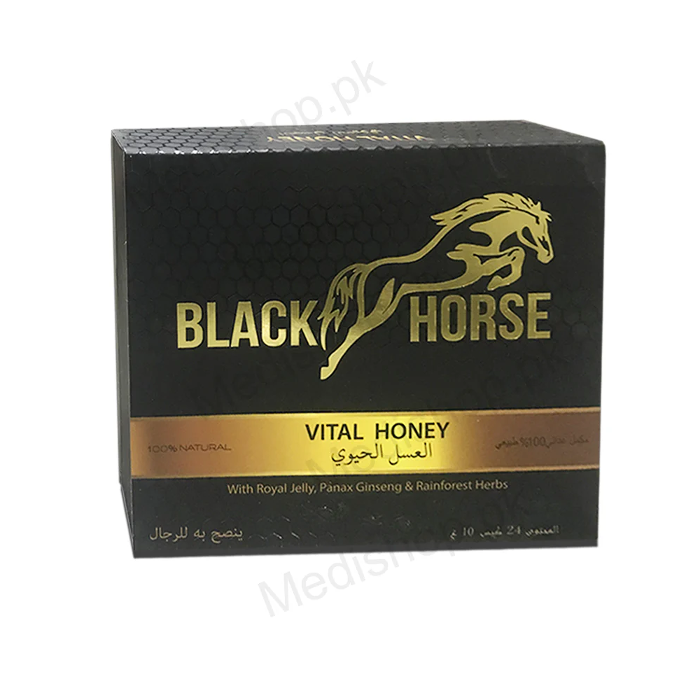 Black Horse Vital Honey is a potent aphrodisiac in Pakistan. In addition to treating erection issues, sexual impotence, sterility, and premature ejaculation, it helps you regain desire, sexual vitality, and libido. Pure honey, royal jelly, bee pollen, and a blend of rainforest herbs are added to this sexual stimulant.