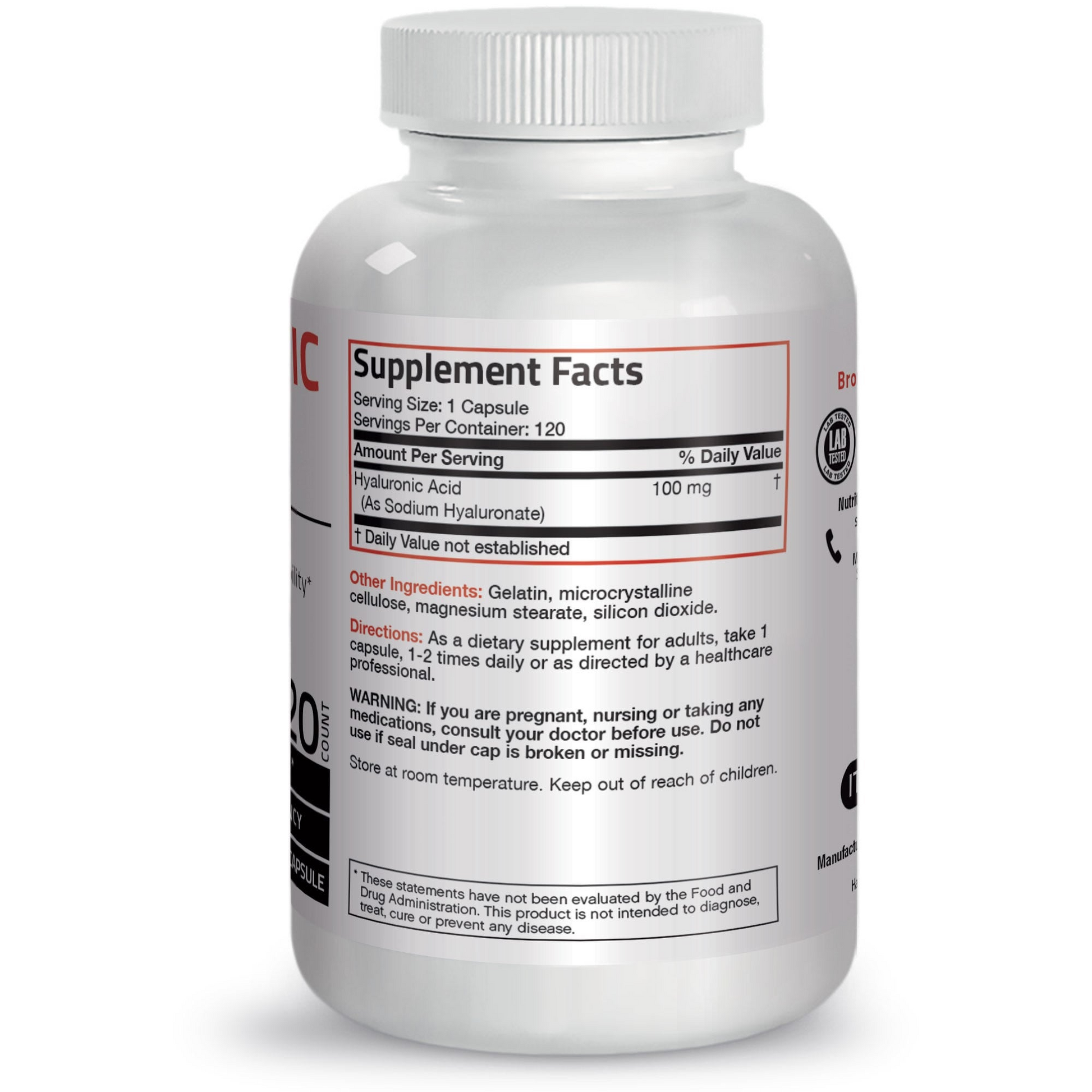 Bronson Vitamins Hyaluronic Acid High Potency - 100 Mg - 120 Capsules