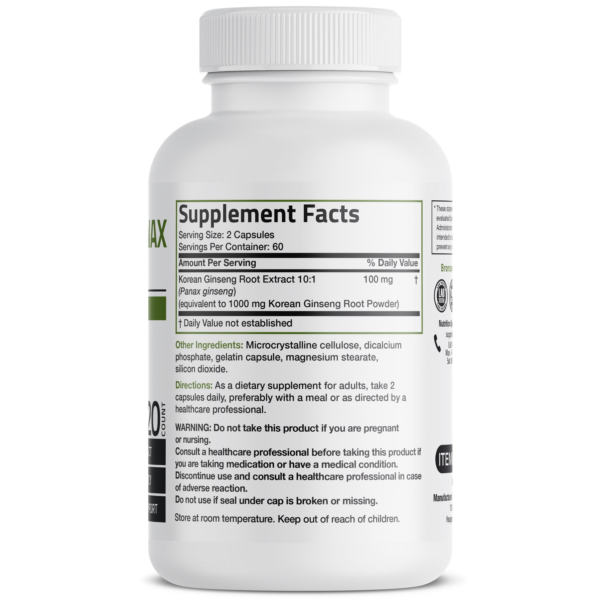 Bronson Vitamins Korean Panax Ginseng - 1,000 Mg 120 Caps