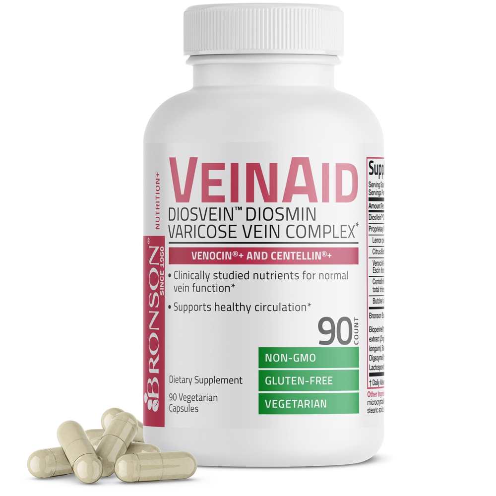 Bronson Vitamins Vein Aid Dios Vein™ Diosmin Varicose Vein Complex - ninety Vegetarian Capsules in Pakistan is a clinically studied complement designed to help healthful circulate and vein function. This precise method incorporates DiosVein™ Diosmin, patented botanicals, and BioAccelerators™ for stronger absorption, imparting herbal help for veins and universal circulatory health. The complement is Non-GMO, gluten-free, and vegetarian, synthetic in a cGMP-licensed facility in New York.