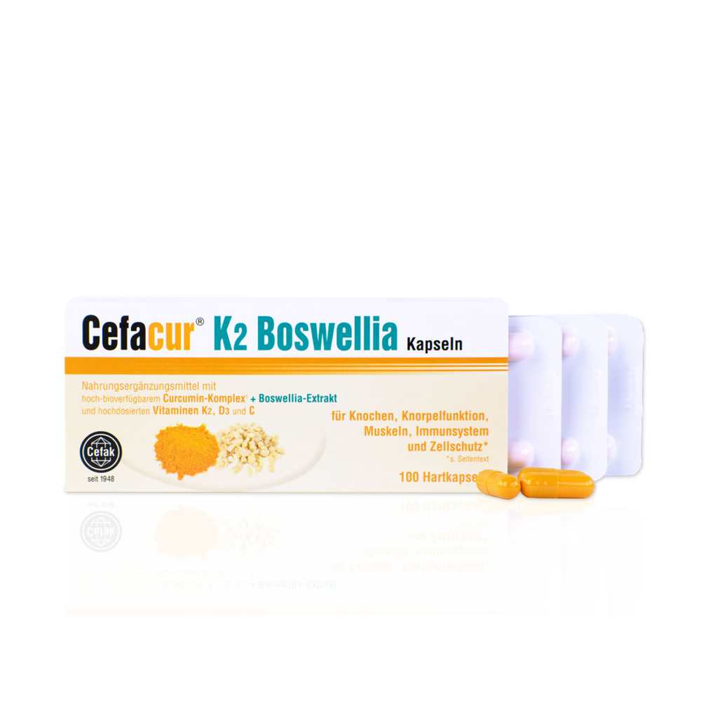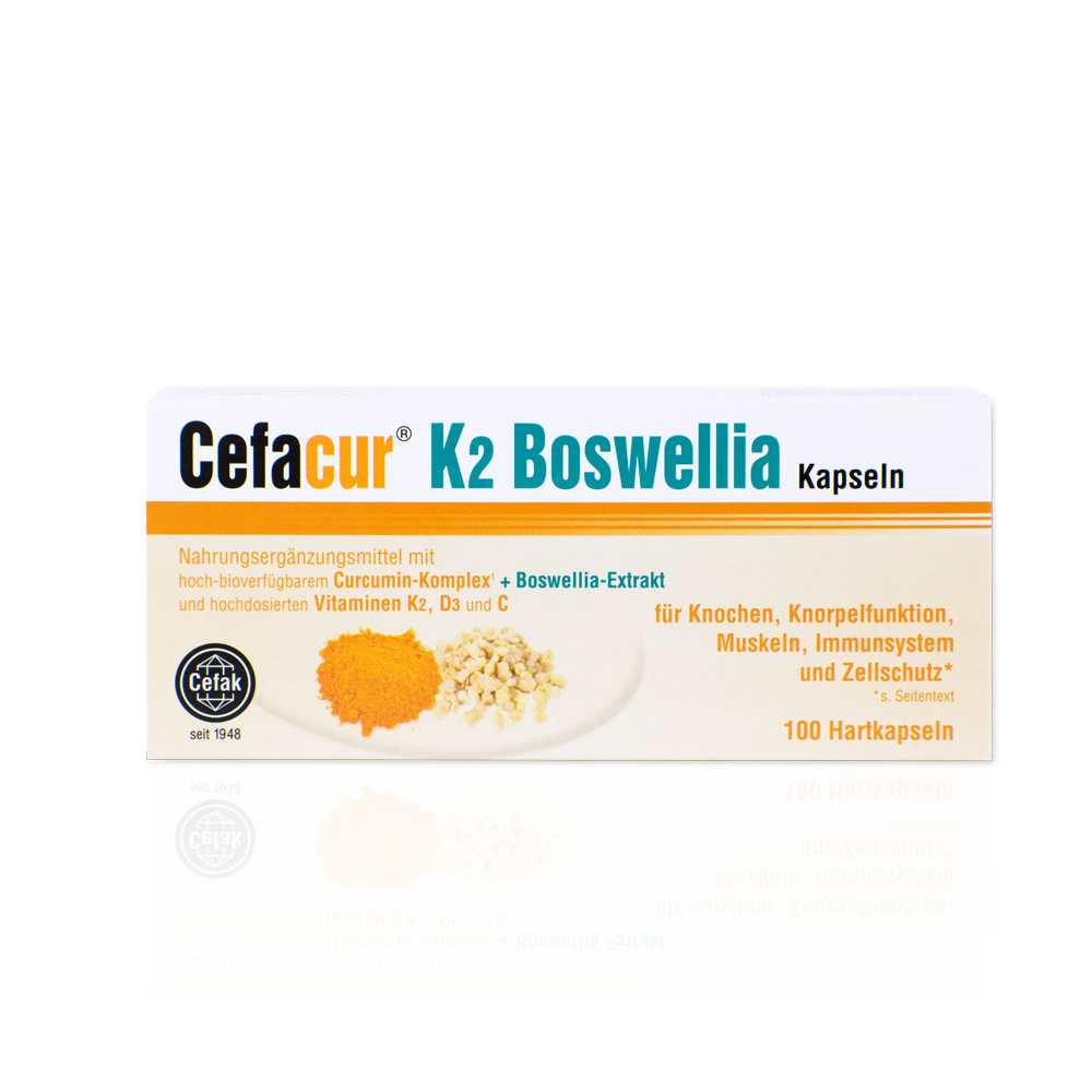 Cefacur K2 Boswellia | Curcumin & Boswellia with Vitamins K2, D3 & C | 100 Capsules