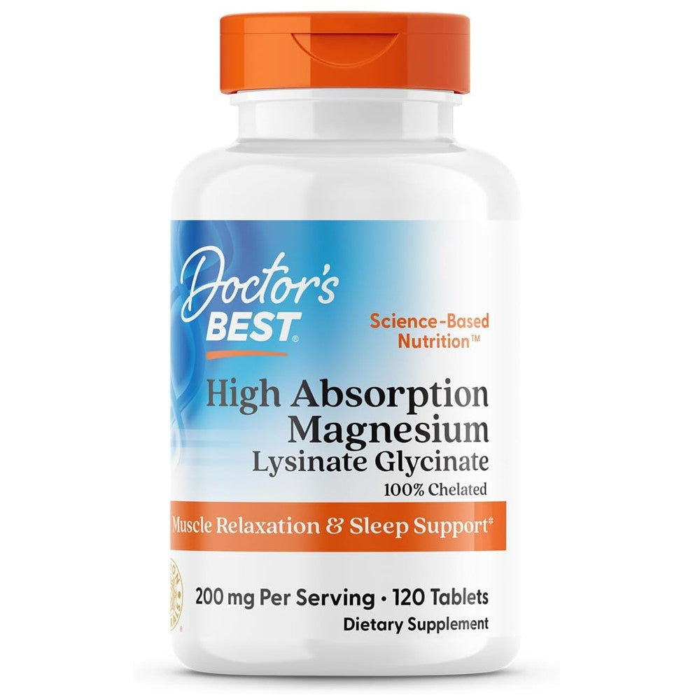 Doctor's Best High Absorption Magnesium Lysinate Glycinate – 120 Veggie Capsules