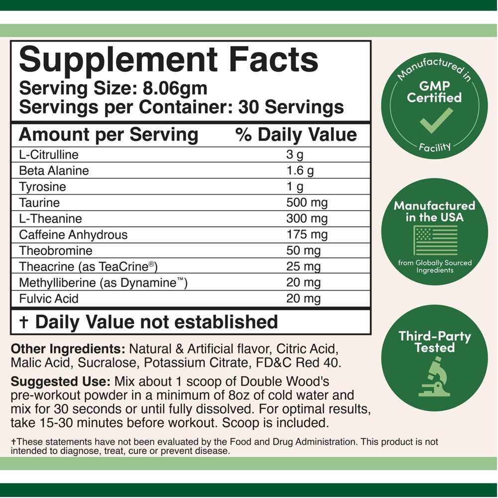 Double Wood Dws Pre-Workout – Energy, Focus & Pump Formula with Caffeine, Dynamine & Citrulline | Watermelon | 241.8g