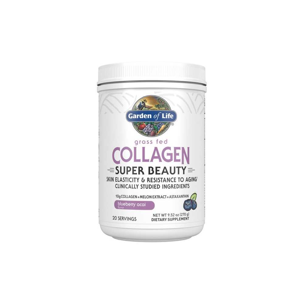 Garden of Life Grass Fed Collagen Super Beauty Blueberry Acai 270g Powder in Pakistan is a top rate splendor components designed to guide wholesome skin, hair, and nails†. It carries 10g of grass-fed and pasture-raised collagen peptides (Type I & III) for higher absorption. This components additionally consists of Holimel® French Melon extract to reinforce herbal antioxidant defense† and AstaPure® Astaxanthin for introduced splendor guide†. With 500 million CFU probiotics, it additionally promotes higher digestion†. Appreciate the delicious Blueberry Acai like in smoothies, shakes, or baked formulae to your everyday sensation boost.