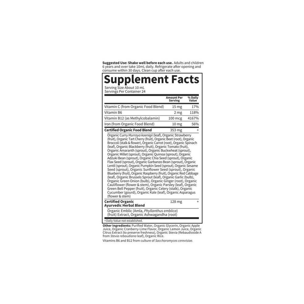 Garden of Life Organics Plant Iron & Organic Herbs Cranberry Lime 8 Fl Oz (240ml) Liquid