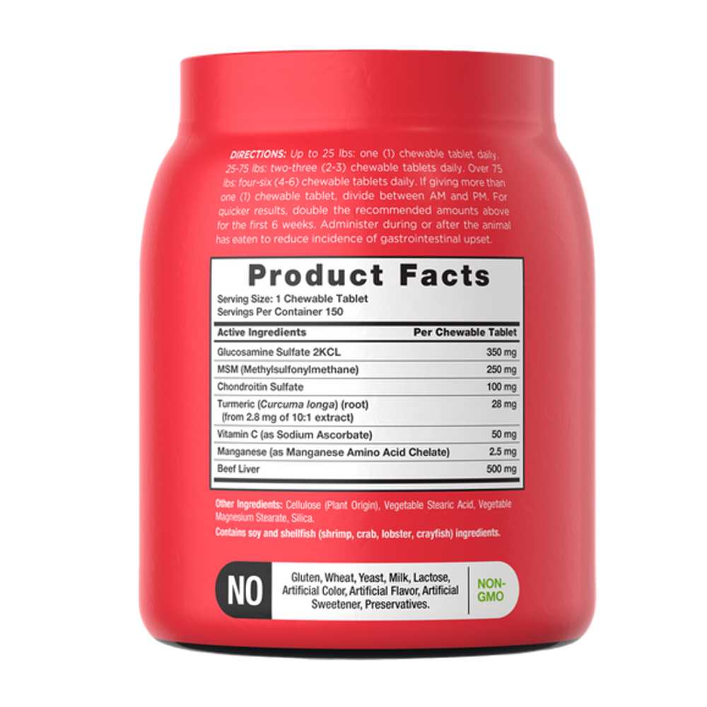 Contains Glucosamine, Chondroitin, MSM, and Turmeric for whole joint aid.