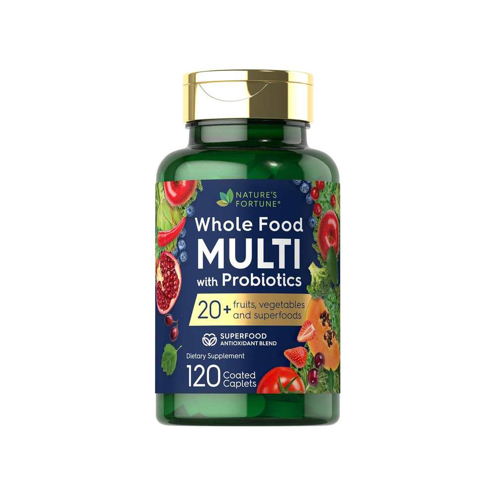 Horbäach Whole Food Multivitamin with Probiotics grants the electricity of over 20 fruits, greens and superfoods in a single handy day by day formula. Packed with evidently happening vitamins, minerals, antioxidants, and probiotics, this complement is designed to assist bridge nutrient gaps for your food regimen and assist your standard well-being. Each covered caplet incorporates a Superfood Antioxidant Blend, a Vegetable and Superfood Blend, plus a Probiotic Balance Blend for superior dietary assist. Gluten free, non-GMO, and crafted with out synthetic colors, flavors, or sweeteners, it`s the proper multivitamin for each ladies and men who need to gasoline their our bodies evidently.