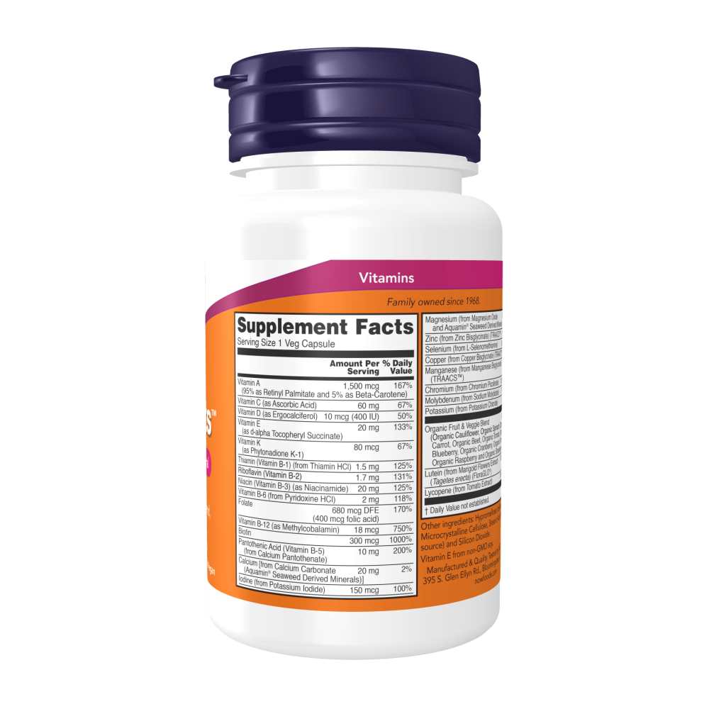 Now Foods Daily Vits – One-A-Day Multivitamin & Mineral with Fruit & Veggie Blend, Lutein & Lycopene – 30 Veg Capsules