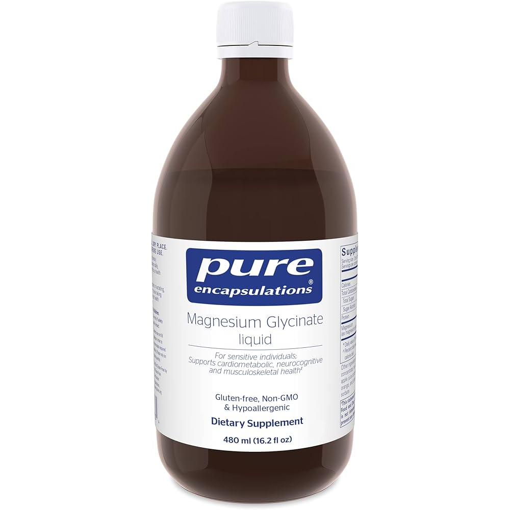 A premium nutritional supplement, Pure Encapsulations Magnesium Glycinate Liquid is intended to promote general health, with a focus on cardiovascular health, muscular function, and nervous system balance. Compared to other forms of magnesium, this liquid composition provides highly accessible magnesium in the form of glycinate, guaranteeing maximum absorption and less pain to the digestive tract.