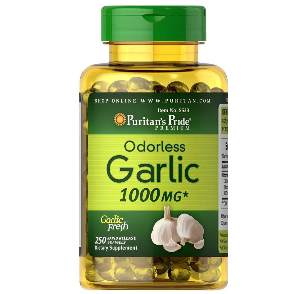 Puritan's Pride Premium Odorless Garlic 1000mg – Supports Heart & Immune Health, 250 Softgels