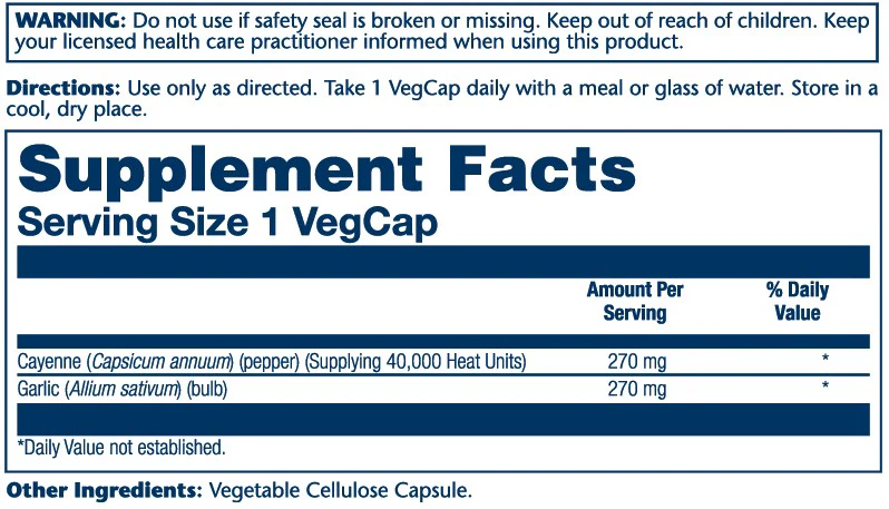 Solaray Cayenne Pepper & Garlic Bulb 540mg 100 Caps