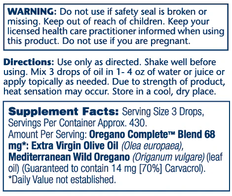 Support your well-being certainly with Solaray Oregano Complete, a top rate combination of Mediterranean wild oregano and additional virgin, cold-pressed olive oil. Each serving offers a strong dose of oregano oil, standardized to include 14 mg of 70% carvacrol, designed to assist preserve standard fitness and wellbeing. Trusted given that 1973, Solaray guarantees each product is lab validated for purity and potency.